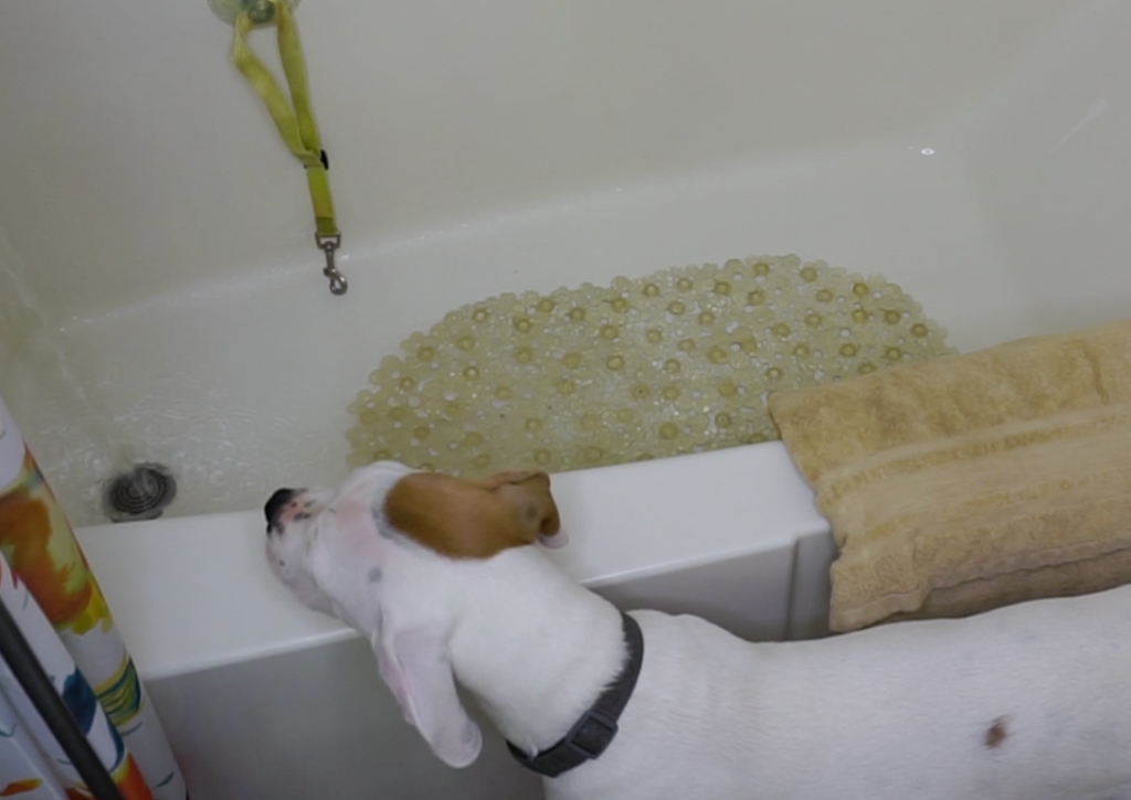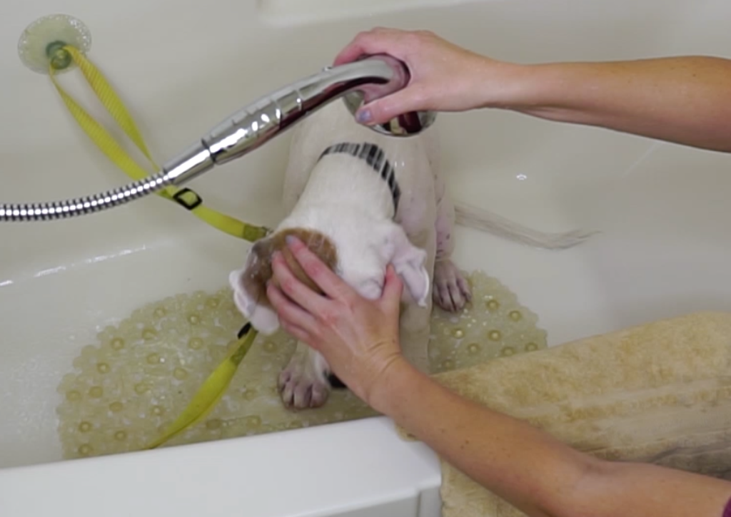 Always test the water on your own skin first. It should be lukewarm or tepid—never hot. Proper temperature is essential for a stress-free dog bath.